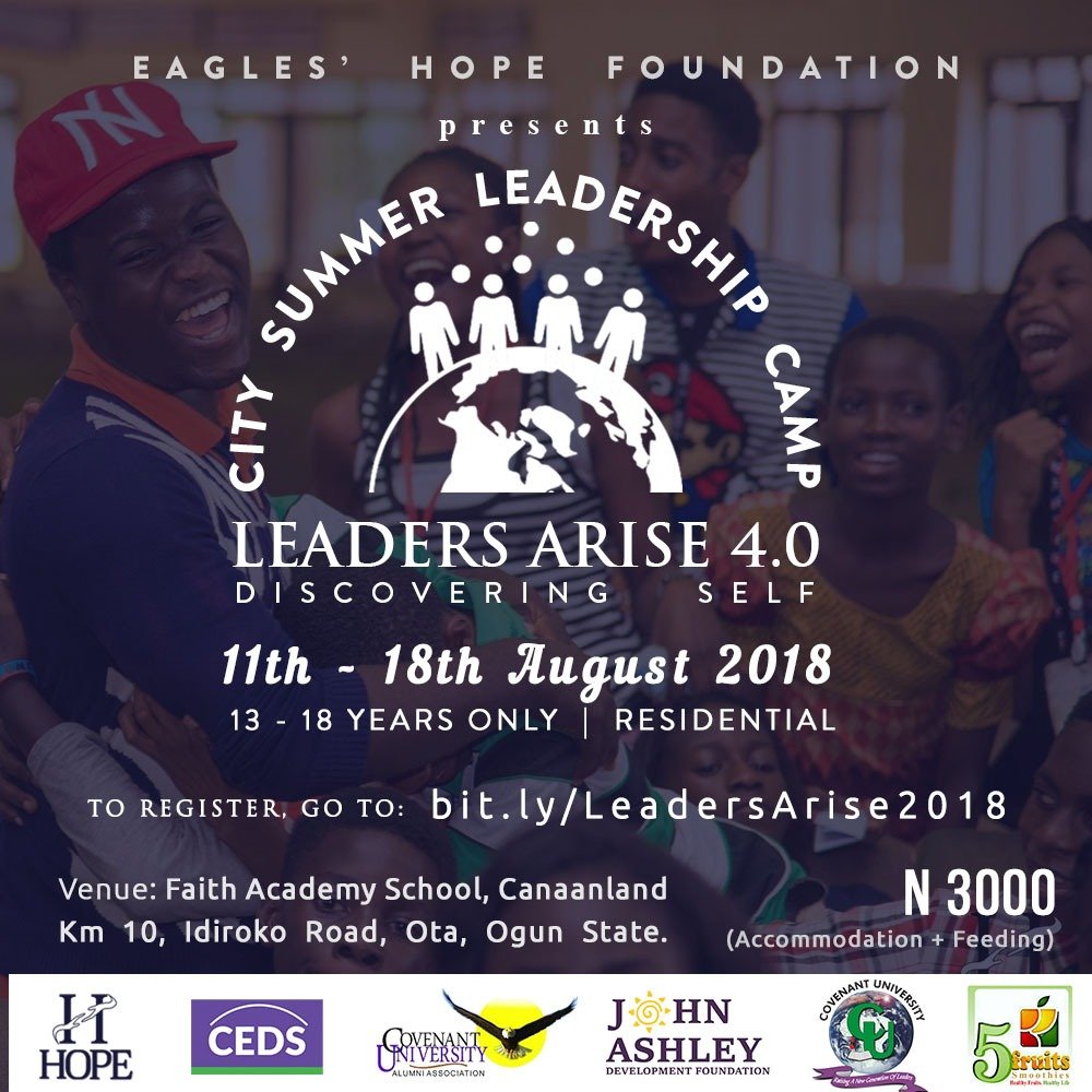 Whoooooop!!!! So CITY Camp is Eagles’ HOPE Foundations: ‘Teenagers Camp’. It’s an 8-day Summer Camp [Residential] coming up August 11th – 18th, 2018.